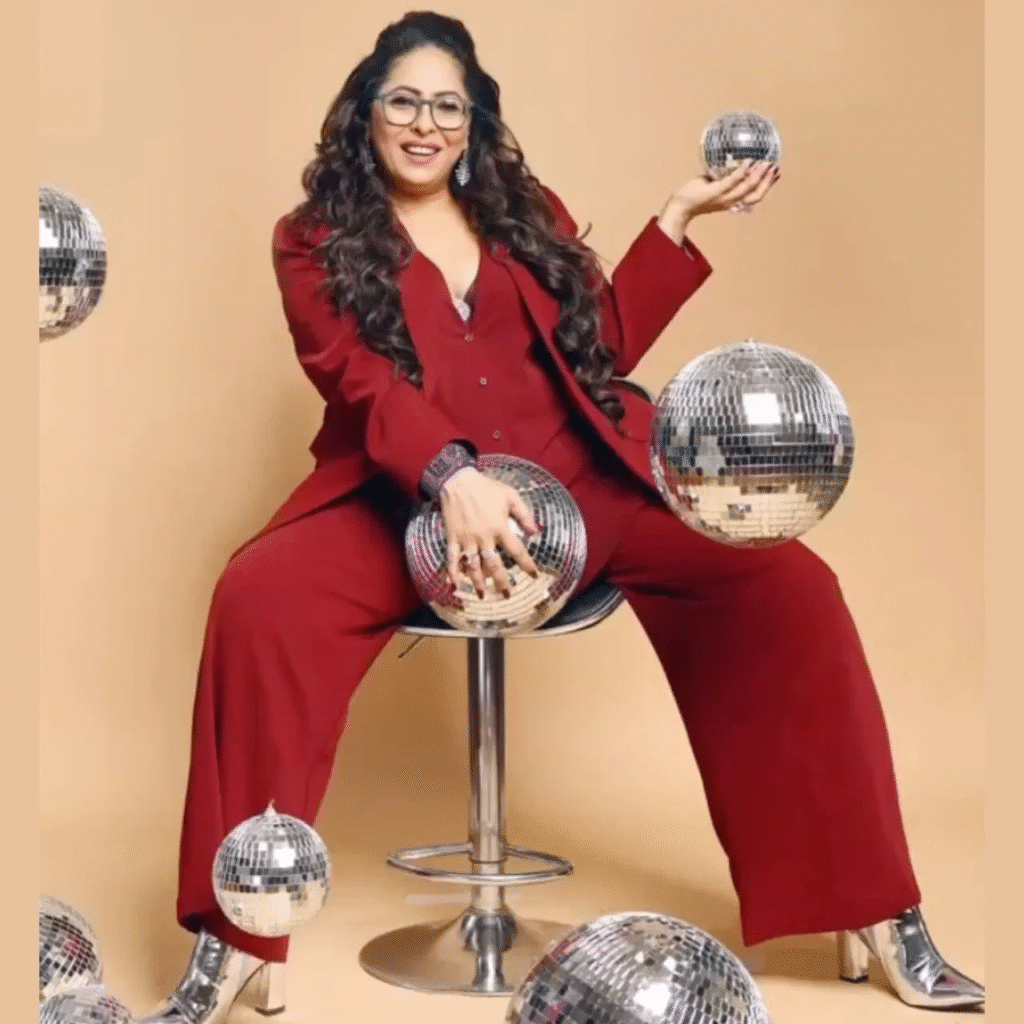 गीता कपूर को डिस्को-थीम फोटो पोज में देखा जा सकता है. उन्होंने बरगंडी कलर का पैंटसूट पहना है, जिसके साथ सिल्वर हील्स, मिनिमम ज्वेलरी उनके स्टाइल को पार्टी रेडी वाइब दे रहे हैं. इस तरह का अटायर काफी दमदार लुक देता है, जिसे वर्कप्लेस पर खास ओकेजन पर वियर किया जा सकता है.